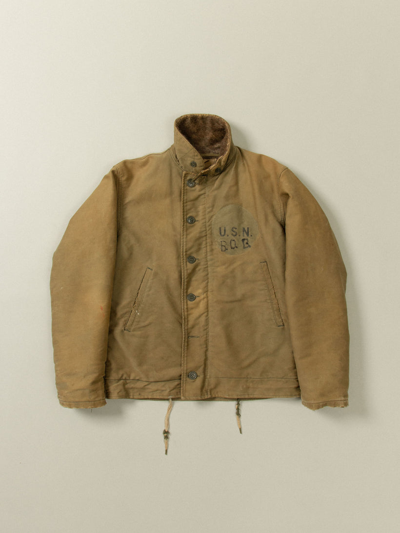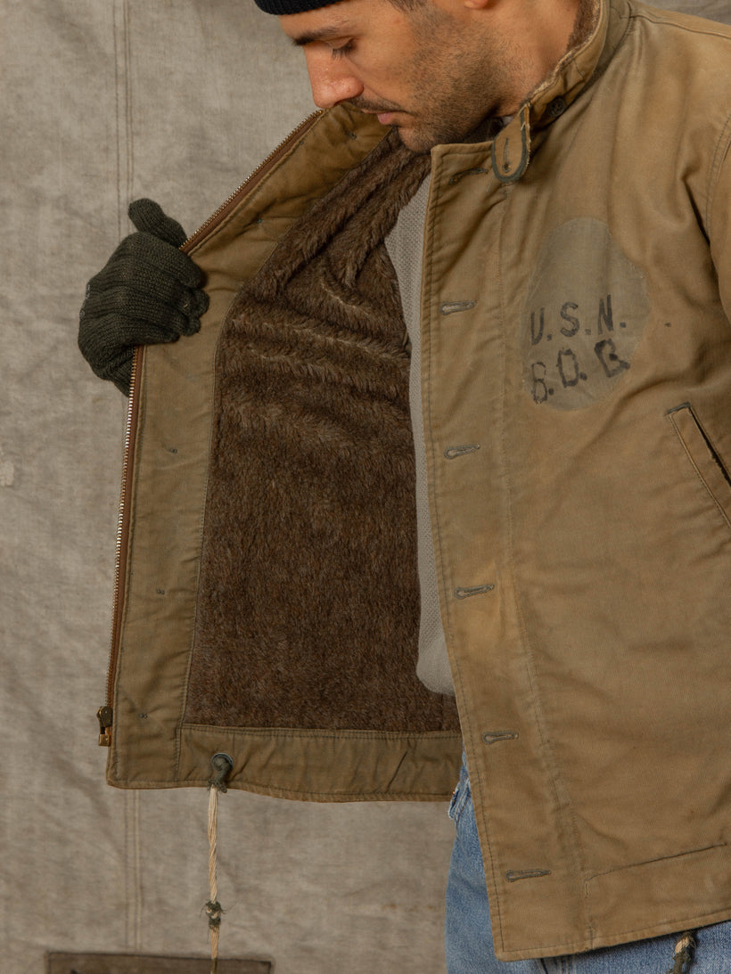 Vtg Rare WWII USN N-1 Alpaca Deck Jacket (S/M)