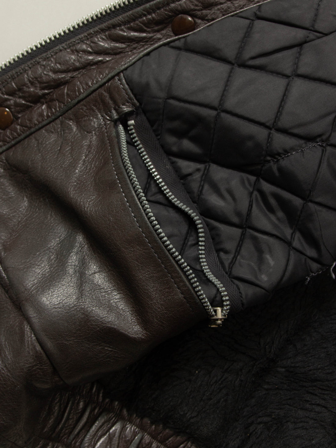 Vintage leather products should hang in dry areas and should be conditioned regularly to avoid cracks.